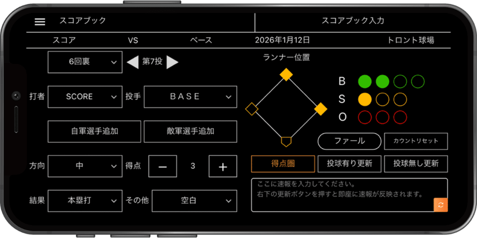 スコアブックの入力は誰でも簡単にOK。少しの野球知識で